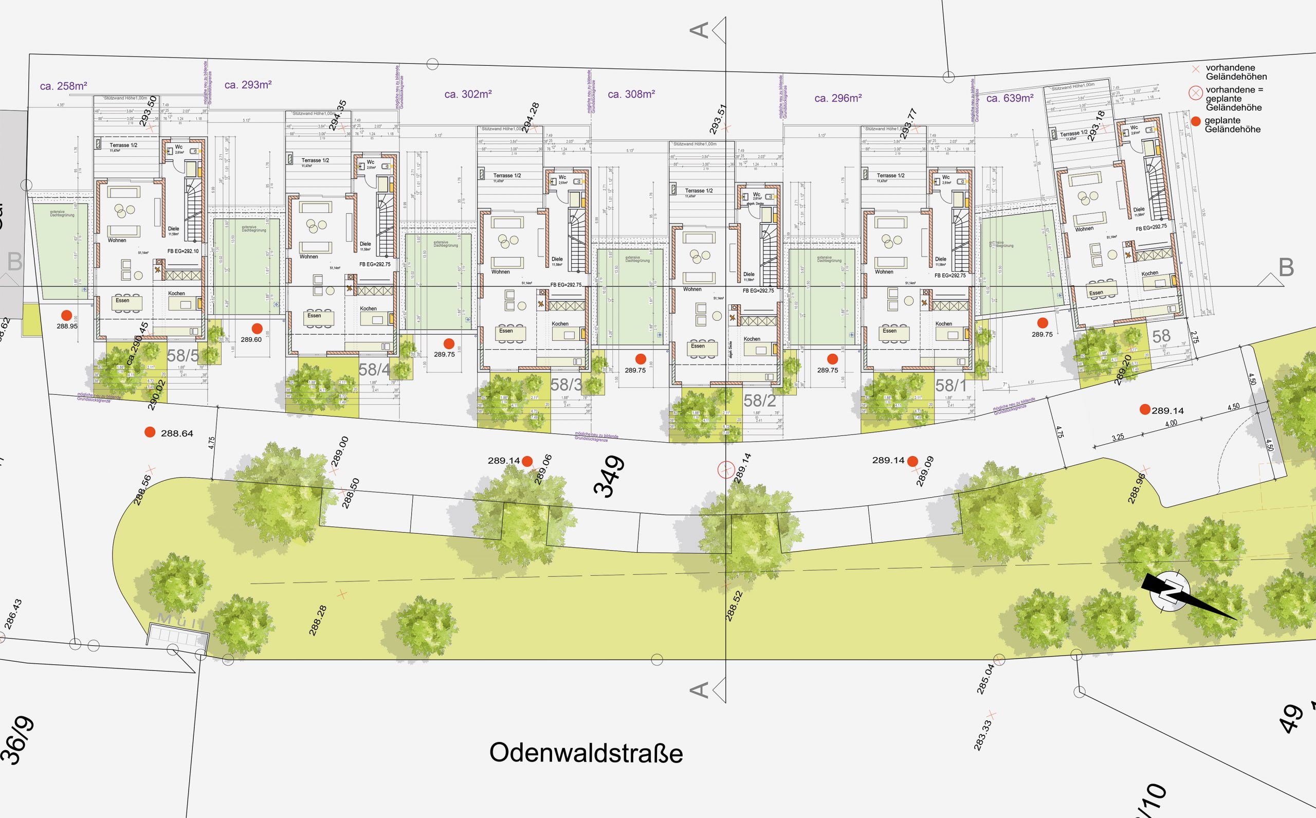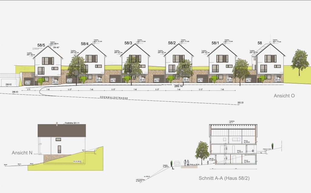 Neubau von 6 Wohnhäusern mit Garagen