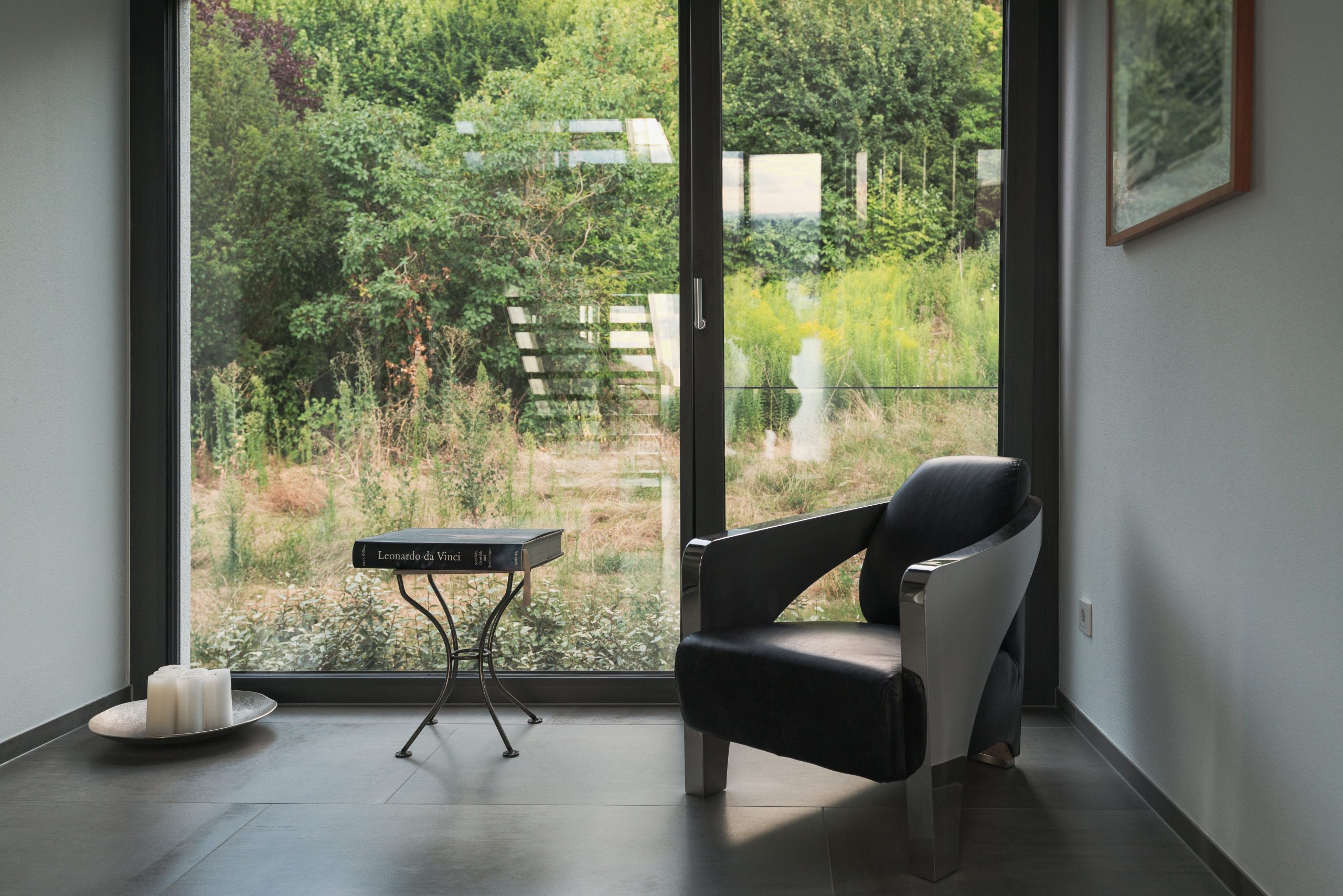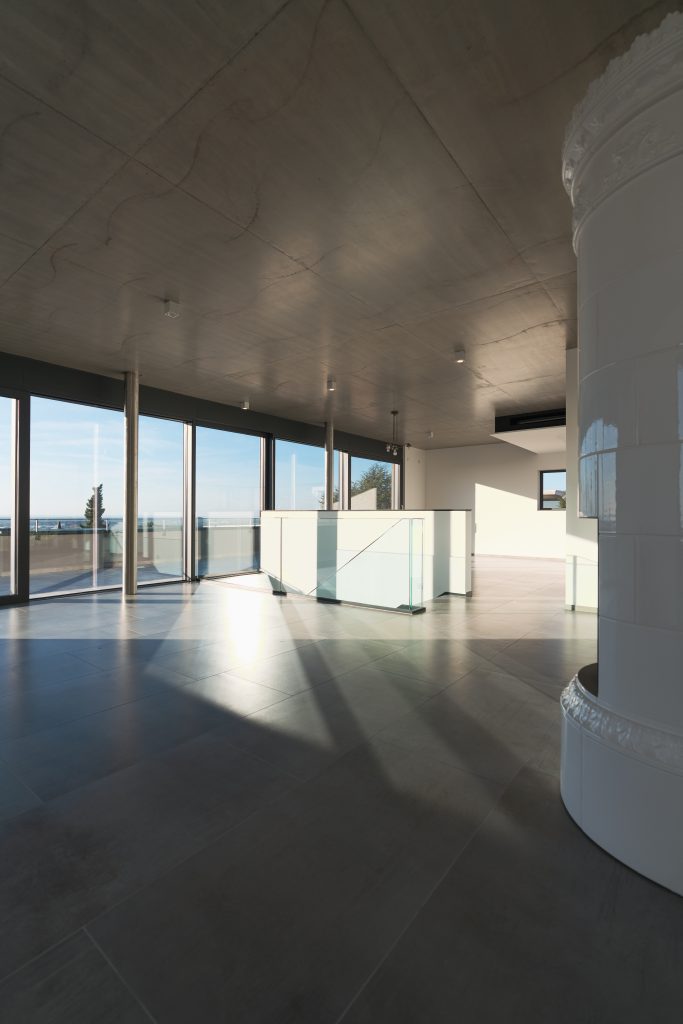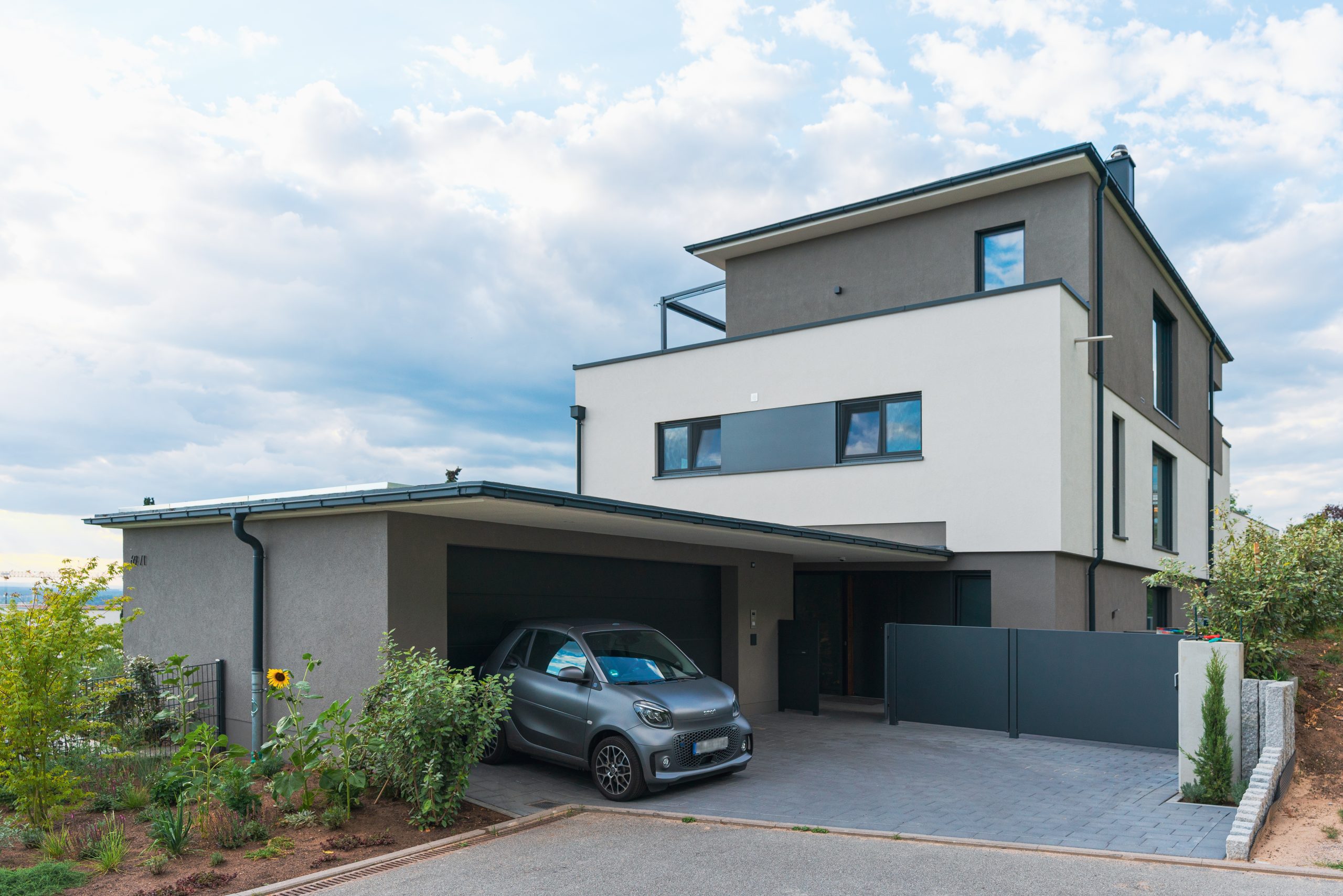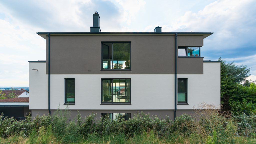 Ein modernes und mit nachhaltigen Details realisiertes Wohnhaus. Die Stellung des Gebäudes, die Ausrichtung der Grundrissstruktur und die einzelnen Fassadenbauteile reagieren auf die herrliche Lage des Anwesens. Hochwärmegedämmte Bauteile und ein Hybrid-Heizsystem mit PV- und Solarthermieanlage ermöglichen eine effiziente Wärmeerzeugung und Wärmespeicherung.