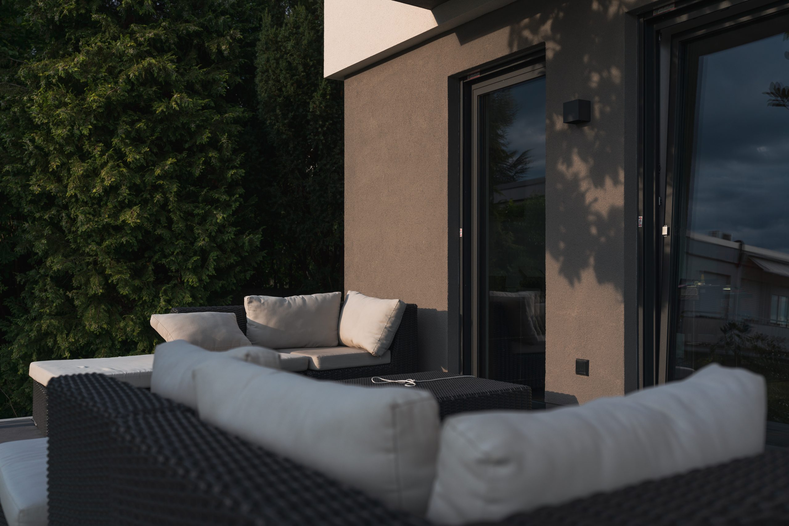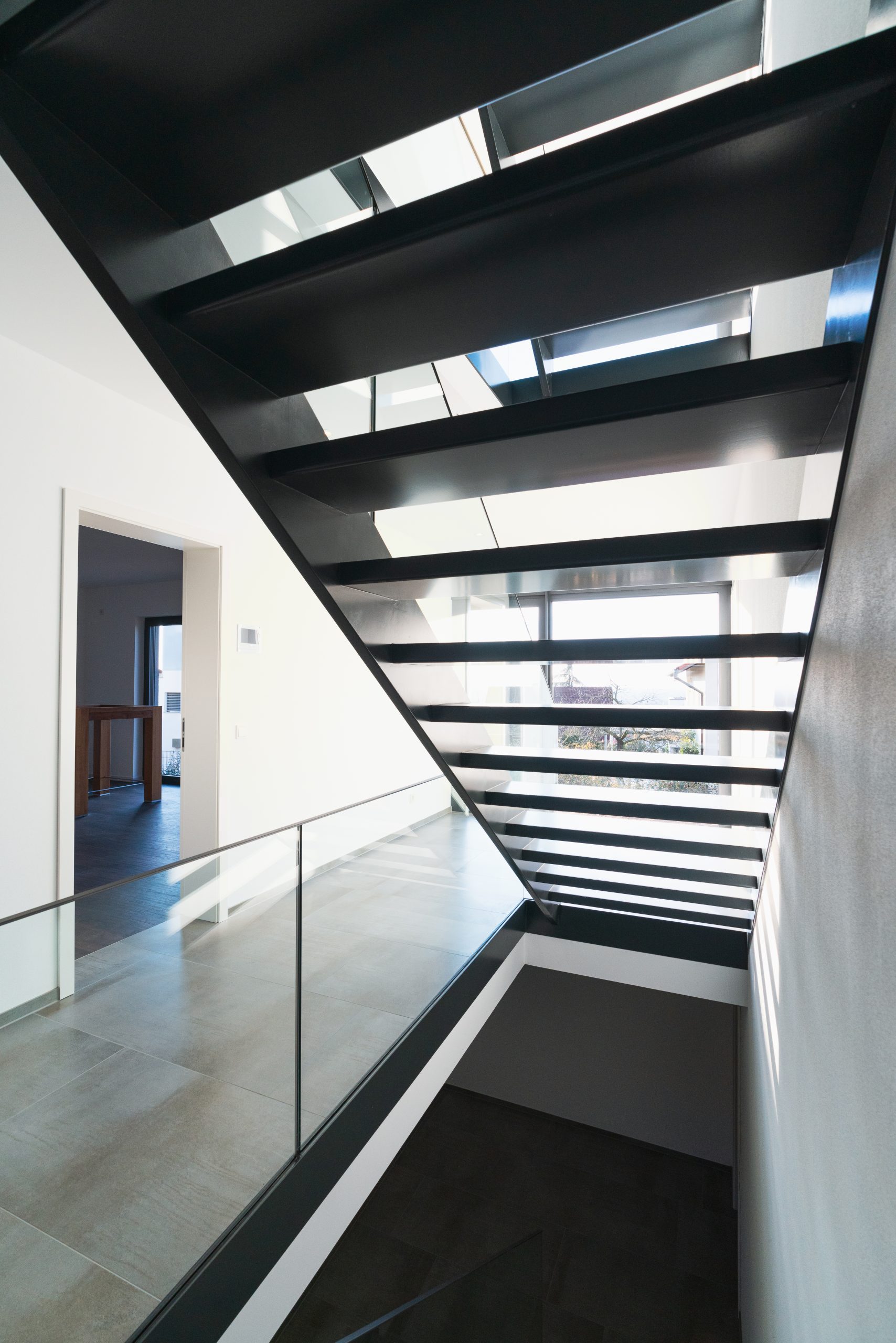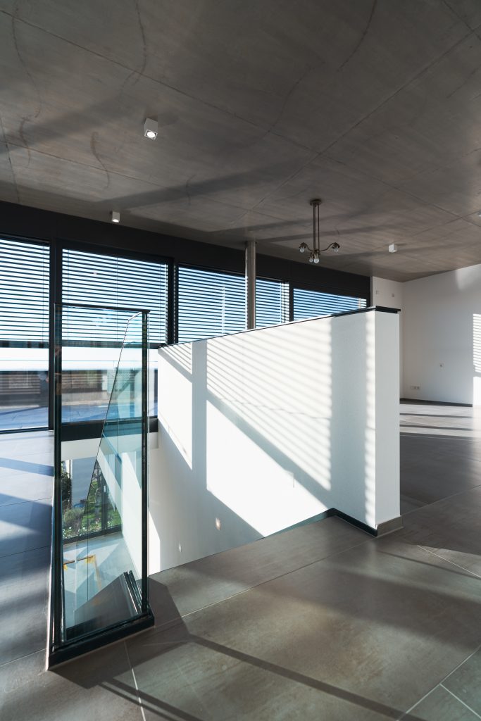 Ein modernes und mit nachhaltigen Details realisiertes Wohnhaus. Die Stellung des Gebäudes, die Ausrichtung der Grundrissstruktur und die einzelnen Fassadenbauteile reagieren auf die herrliche Lage des Anwesens. Hochwärmegedämmte Bauteile und ein Hybrid-Heizsystem mit PV- und Solarthermieanlage ermöglichen eine effiziente Wärmeerzeugung und Wärmespeicherung.