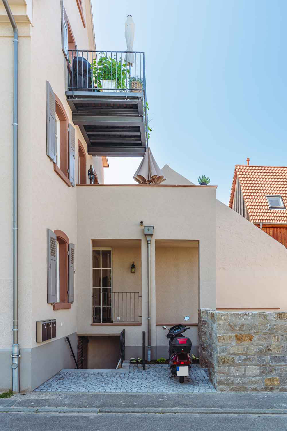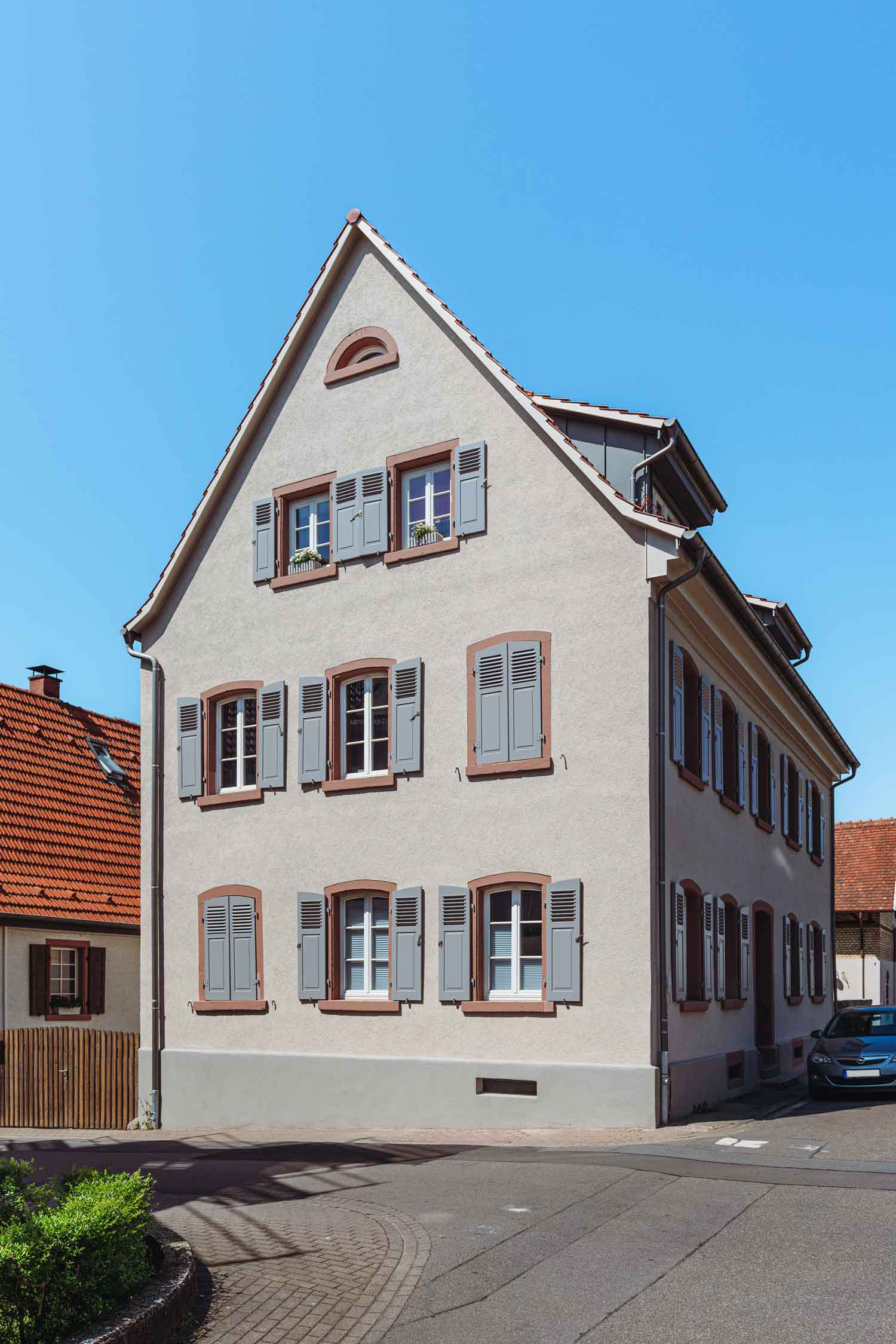 Im Ortskern Hohensachsens befindet sich das historische Gasthaus „Zur Goldenen Rose“. Die Sanierung des Gebäudes aus 1873 ist nun abgeschlossen. Aus dem ehemaligen Gasthaus wurde ein Mehrparteienhaus mit 3 Wohneinheiten. Jede der Wohneinheiten verfügt über einen Austritt in Form eines Balkons, einer Dachterrasse oder einer bodenebenen Terrasse mit Hof. Historische Bauteile wurden behutsam saniert und in Szene gesetzt. Die vernachlässigten Dachgeschossräume erhielten einen neuen Dachstuhl; durch den Einbau von Gaupen und den freien Blick in den First hinein wurden die Wohnbereiche aufgewertet.