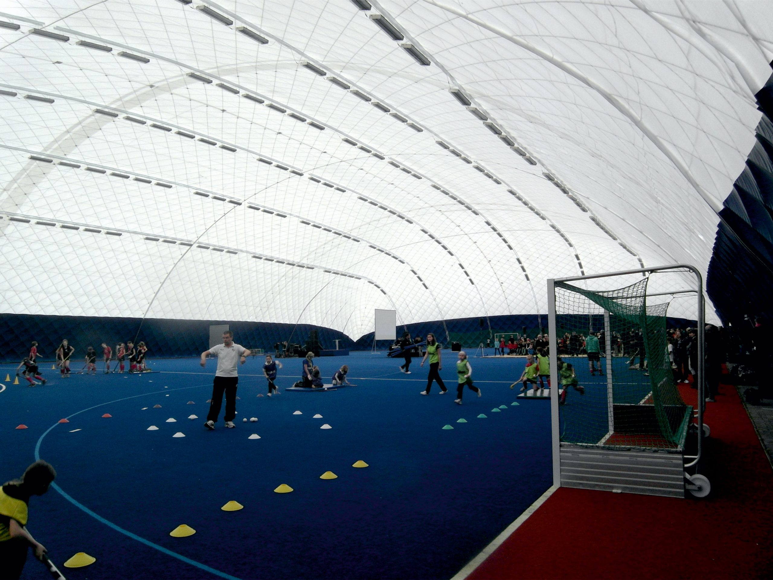 das dritte kunstrasenspielfeld auf dem mhc-gelände ist olympia-blau und wird im winter von der traglufthalle überdacht, sodass feldhockey auch im winter trainiert werden kann. viele nationalmannschaften nutzen diese möglichkeit: ein mobiles hallen-hockeyfeld für den trainingsbetrieb, um die hallensaison zusätzlich zu entlasten. die gesamte anlage ist für spiele im landesverband zugelassen.